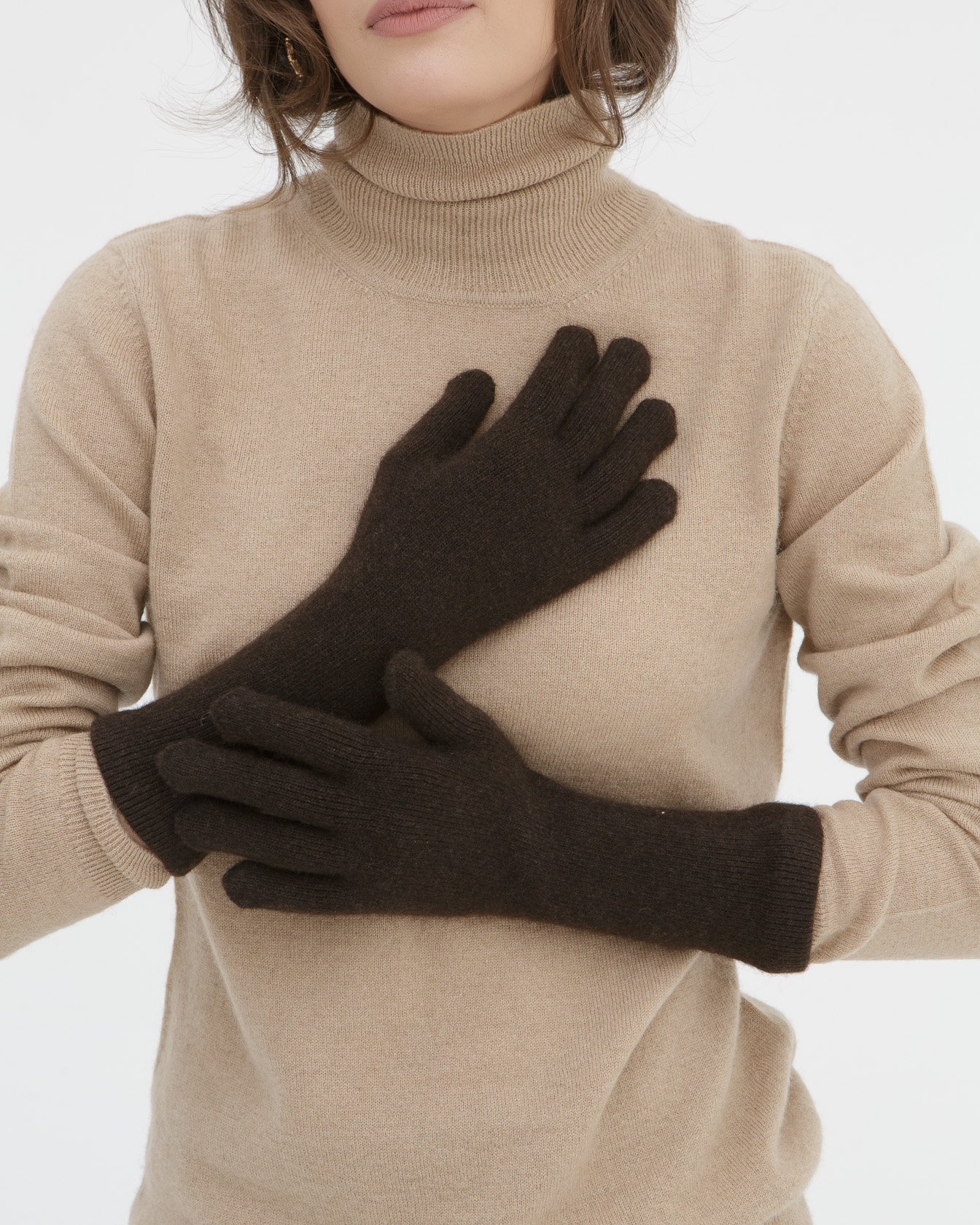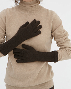 Перчатки удлиненные из пуха яка 66mF темно-коричневые