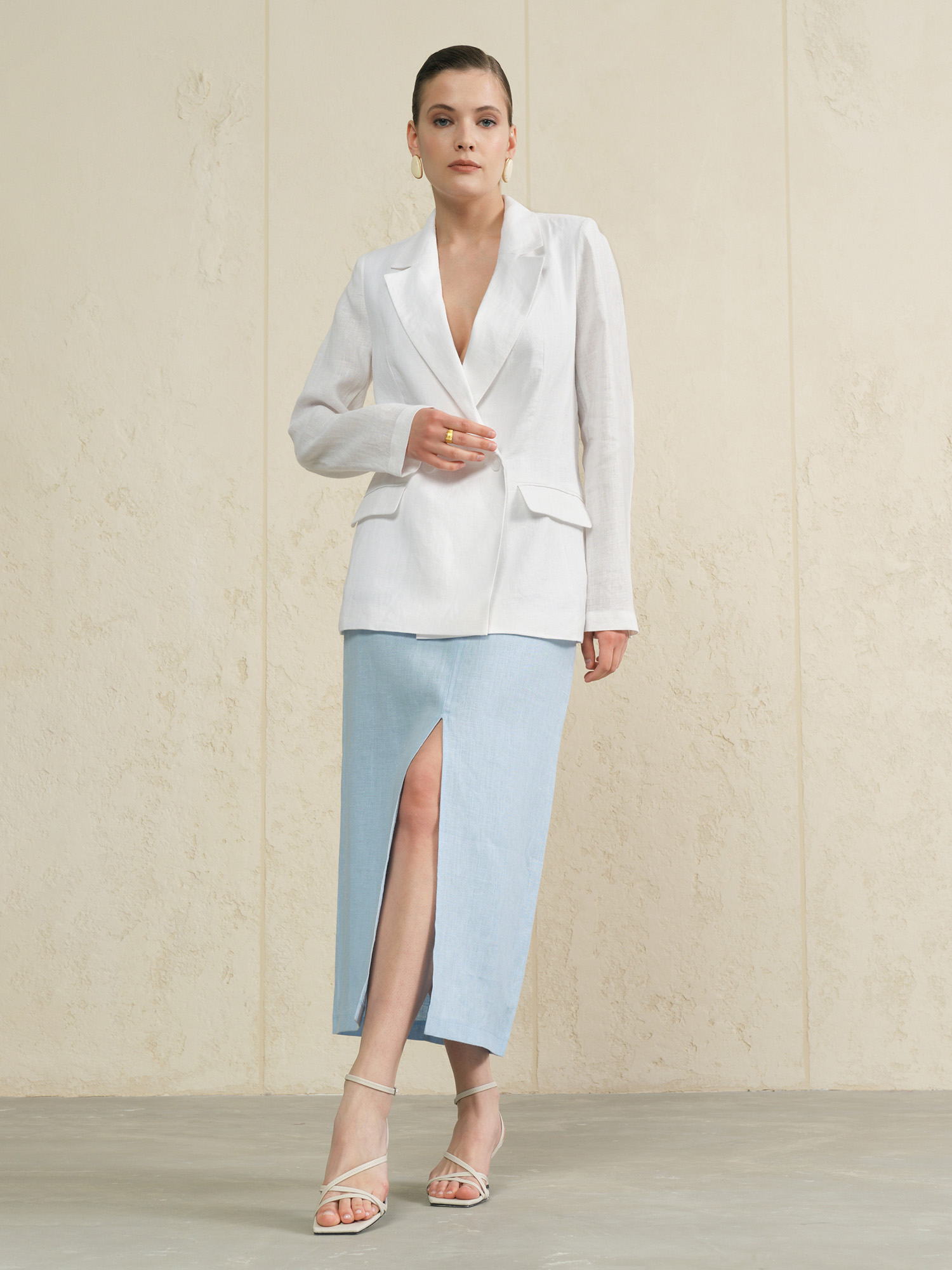 Льняная юбка — элегантная и универсальная модель с женственным силуэтом. Подходит для создания лёгких и стильных образов в тёплый сезон.